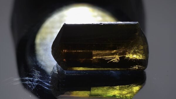 This exceptional 20.99ct Dravite Tourmaline is a fascinating study in color and crystal structure. While exhibiting the characteristic natural brown hues of Dravite, this stone boasts a truly unique feature: distinct color zoning along its crystallographic axes. A striking golden coloration runs parallel to the A and C axes, creating a beautiful internal radiance, while a vibrant chrome green is visible along the B axis. The stone measures 21.51×10.58×9.01mm, offering a substantial size for a collector’s piece.